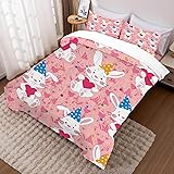 DAZYFA Cartoon Bunny Comforter Set Full/Queen Size Pink Bedding for Kids Girls Teens Red Heart-Shaped Hat Rabbit Heart-Shaped Bedroom Bed Sets 1 Comforter 2 Pillowcases