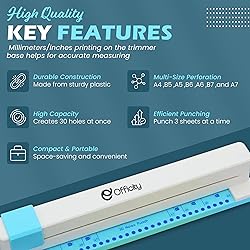 𝐏recise 𝟑𝟎 𝐇ole 𝐏unching: Create clean, evenly spaced holes with every press using this Paper Punch, suitable for assembling customized notebooks or documents with coil binding accuracy. 𝐌ulti 𝐒ize 𝐂ompatibility: Compatible with A4, A5, A6, and A7 paper, this binder hole puncher adapts to various layouts, making it a reliable cinch binding machine for planners, reports, or study guides. 𝐂ompact & 𝐏ortable: Lightweight and easy to store, this manual binding punch is ideal for small desks or on the go use, and doubles as a convenient paper binder for everyday tasks. 𝐃urable 𝐏lastic 𝐃esign: Made from tough plastic, the spiral notebook hole puncher withstands frequent use and serves as a dependable book binding machine for offices, classrooms, or creative workspaces. 𝐒uitable for 𝐃𝐈𝐘 𝐏rojects: Suitable for crafting or planning, this spiral bindings tool helps users create personalized content, while also functioning as a spiral coil binding machine for home setups.