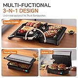 - Panini Press Grill, 1000W Sandwich Maker with Non-Stick Coated Plates, Opens 180 Degrees for Any Size of Food, 3-in-1 Sandwich Press Electric Grill, Stainless Steel Surface and Removable Drip Tray