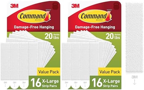 Command XL Heavyweight Picture Hanging Strips, 20 lb Capacity, 32 Pairs (64 Strips), White Adhesive, Damage-Free Wall Hangers for Home Decor