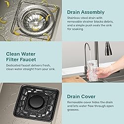 SLEEK STAINLESS STYLE - Transform your kitchen with the modern appeal of this matte stainless-steel kitchen sink. Its versatile design effortlessly complements various countertop materials, providing a chic focal point for your modern kitchen. SOUND-REDUCING DESIGN - Enjoy a quieter kitchen with this stainless steel sink featuring sound-reducing technology. Thoughtfully engineered to minimize noise during dishwashing, it helps create a more peaceful kitchen without compromising efficiency. DURABLE & EASY-CLEAN - This durable stainless steel sink is easy to clean, wipe down, and sanitize. Its stain-resistant and heat-resistant features ensure a pristine appearance. The sloped bottom and smart drainage design add efficiency to your kitchen routine. QUALITY MATERIALS - Constructed with high-quality materials like Stainless Steel SUS304 for the sink and SUS201+PVC for the drain rack. Crafted with precision using materials such as Rubberwood, Stainless Steel 304, Brass, and PP. COMPLETE KITCHEN SOLUTION - Upgrade your kitchen with this comprehensive package, including a stainless steel kitchen sink, drain rack, shower faucet, water purifier tap, square basket, basin spray, cutting board, and cup washer.