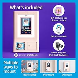 PICTURE-PERFECT PRINTS: Capture flawless shots with the built-in flash and LED ring light, and see it all in real time on the vibrant 10.1” LCD touchscreen. With 100 sheets of 3x4 ZINK Paper included, you can start printing sticky-backed, smudge-proof photos instantly—no ink required. YOUR PHOTO BOOTH, FULLY CUSTOMIZED: Set up your event in minutes with custom frames, filters, and guest privileges like print limits, photo sharing, and access control. Personalize every detail from brightness to audio settings—and start printing right away with the ZINK paper already in the box. PRINTING MADE SIMPLE WITH ZINK TECHNOLOGY: Enjoy mess-free printing with HP’s exclusive 3x4 ZINK Paper. No ink or toner needed—colors are embedded in the paper for waterproof, tear-resistant prints that double as stickers. Keep tabs on paper levels right in the app. Please note: The HP Photo Booth is compatible only with HP 3x4 ZINK Paper. PORTABLE PARTY STARTER + PAPER TO MATCH: This all-in-one portable photo booth weighs just over 7 pounds, making it easy to transport and set up anywhere. With 250+ built-in frames and 100 ZINK paper sheets included, you’re ready to capture and print the fun from the first photo to the last. INSTANT SHARING, ON PAPER OR ONLINE: Print extra copies instantly or generate a QR code when connected to Wi-Fi for guests to download and share digital copies. Photos are automatically stored to the cloud for easy access and sharing—plus, with 100 ZINK sheets included, everyone can walk away with a keepsake in hand.