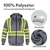 VENDACE High Visibility ANSI Class 1 Reflective Safety Fleece Sweatshirt Hoodie for Men with Detachable Hood(Grey,XL)