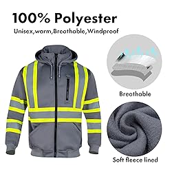 - Style: Safety sweatshirt hoodie ,UnisexMaterial: Hi vis safety jacket hoodie,100% Polyester,fleece lined,warm and breathable.Color:Yellow,Orange,Black,Royal blue/GreyAvailable Size: S,M, L, XL, 2XL,3XL,4XL,5XLANSI / ISEA 107-2020 Type O Class 1 StandardsApplication:This hi vis hoodie is for construction workers, survey crews, surveyors, contractors, emergency responders, EMS, engineer, forestry, firefighter, police, crossing guard, public safety, security, traffic and parking attendants. Or for recreational activities such as: cycling, hunting / hunter, running, volunteering, jogging, bike, bicycle, motorcycle, and volunteering.
