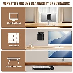 - A solid, reliable, neat and efficient installation solution for your HP Mini PC! Designed specifically for the HP EliteDesk, ProDesk, and Pro Mini series, this mount is designed to help you maximize the use of space and enhance the quality of your work environment with more solid workmanship, thoughtful details, and more effective cooling assistance. Why is this stand more worth choosing? Sturdy and Durable, Worry-free Carrying: The core bracket structure is made of high-quality thickened cold-rolled steel, after rigorous load-bearing test (maximum support of 5kg, far more than the weight of the mini PC), it is more stable and firm than ordinary iron or plastic bracket, and will not be deformed in long term use. The optimized triangular mechanical structure provides reliable support whether it is wall-mounted, hidden under a desk or on the back of a monitor. Convenient Installation and Upgraded Experience: The VESA interface adopts humanized manual knob snap, which can be firmly locked by tightening the knob, eliminating the need to find a screwdriver, and disassembling the computer is equally fast. The mounting holes accurately match the HP mainstream mini models, making the installation process smooth and hassle-free. Optimized Heat Dissipation, Guaranteed Performance: We understand the importance of heat dissipation in a mini PC. The bracket adopts a comprehensive double-layer hollow design - bottom plate + side plate, effectively increasing the ventilation area and promoting natural air convection, helping your HP Mini PC discharge heat more smoothly, providing an additional layer of protection for continuous and stable operation. Fine cable management, long-lasting neat: Randomly equipped with two high tenacity removable nylon straps, say goodbye to the single Velcro easy to aging, easy to loosen the trouble. You can use them flexibly according to the cable situation, easily organize the power cord, data cable, etc., and keep the desktop or hidden area fresh and beautiful. Detailed attention to detail, protection in place: the parts in contact with the computer are equipped with thickened non-slip silicone pads, effectively preventing scratches on the computer shell, and increase friction to prevent accidental sliding. Screws and other accessories are anti-rust treatment, durable. Three installation scenarios are easily realized: Concealed installation under the table: Maximize the release of desktop space and keep the desktop minimalist. Vertical Wall Mount: Utilizes vertical space for a clean and organized look. VESA (VESA): Attach the mini PC to the back of the monitor for a space-saving “all-in-one” experience.
