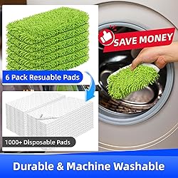 Value 6 Pack & Long-Lasting Use: Includes 6 reusable mop pads—each designed for more than 200 uses. Reliable, durable, and easy to clean, they offer excellent value and consistent performance for everyday home cleaning. Please note: Mop and handle are not included. Thick Chenille Material for Wet & Dry Use: Crafted from durable microfiber chenille, these mop pads refills feature high-density fibers that trap dust, dirt, pet hair, and debris effortlessly. Super absorbent and non-abrasive, they clean your floors thoroughly without leaving residue or streaks Reusable and Machine Washable: Use these mop pads for both wet mopping and dry sweeping—then simply toss them in the washing machine after use. Built to handle repeated washes without losing effectiveness, helping you save money and reduce the need for disposable refills Safe for All Floor Types: Gentle yet effective, these reusable mop pads work great on hardwood, laminate, vinyl, marble, tile, bamboo, and stone floors. Whether you’re dealing with pet hair, crumbs, or everyday dirt, they make floor cleaning quick and easy Value 6 Pack & Long-Lasting Use: Includes 6 reusable mop pads—each designed for more than 200 uses. Reliable, durable, and easy to clean, they offer excellent value and consistent performance for everyday home cleaning (mop not included)