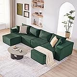 Weture 135.4" Cloud Couch Sectional, Modular Sofa with Deep Seat, Plush Corduroy U Shaped Boneless Couch, Convertible Sectional Couches for Living Room, 6Seat, Green
