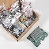 - Mega Electronic Components Assortment Kit includes the following components: 1000pcs Resistor, 1/4w 1% metal film Resistor, 50 different values each of 20pcs 0Ω, 0.5Ω, 1Ω, 2.2Ω, 3.3Ω, 4.7Ω, 5.6Ω, 6.8Ω, 8.2Ω, 10Ω, 22Ω, 33Ω, 47Ω, 56Ω, 68Ω, 82Ω, 100Ω, 220Ω, 330Ω, 470Ω, 560Ω, 680Ω, 820Ω 1K, 2.2K, 3.3K, 4.7K, 5.6K, 6.8K, 8.2K, 10K, 20K, 33K, 47K, 56K, 68K, 82K, 100K, 220K, 330K, 470K, 560K, 680K, 820K 1M, 2.2M, 3.3M, 4.7M, 5.6M, 10M 170pcs Transistor, TO-92, 16 different values each of 10pcs S9012, S9013, S9014, S9015, S9018, S8050, S8550, C1815, 2n5401, 2n5551, 2n3906, 2n9604, A1015, A42, A92, A733, C945 2pcs PNP Transistor 120pcs Electro Capacitors, 16v-50v 12 different values each of 10pcs 0.22uF, 0.47uF, 1uF, 2.2uF, 4.7uF, 10uF, 22uF, 33uF, 47uF, 100uF, 220uF, 470uF 100pcs Diodes, 8 different types each of 5 to 25pcs 1n4148, 1n5399, 1n5819, FR107, FR207, 1n5408, 1n4007, 1n5822 2pcs 1n270 Germanium Diode 100pcs 3mm LED, each 20pcs red, green, blue, yellow, white 100pcs 5mm LED, each 20pcs red, green, blue, yellow, white 310pcs Capacitors, Ceramic 50v, 1pf to 0.1uF, 31 different values each of 10pcs pF:1pf, 2pf, 3pf, 5pf, 10pf, 15pf, 22pf, 30pf, 33pf, 47pf, 68pf, 75pf, 82pf, 100pf, 150pf, 220pf, 330pf, 470pf, 680pf nF: 1nF, 1.5nF, 2.2nF, 3.3nF, 4.7nF, 6.8nF, 10nF, 15nF, 22nF, 47nF, 68nF uF: 0.1uF 2pcs LM358 Dual OpAmp IC 2pcs NE555 Timer Oscillator IC 2pcs JRC4558 Dual OpAmp IC 12pcs Trim Potentiometers, RM065 100Ω, 500Ω ,1K, 2K, 5K, 10K, 20K, 50K, 100K, 200K, 500K, 1M 4pcs Prototype PCB 2*8, 4*6, 5*7, 7*9 cm 3pcs DC Jack DC-022 5.5*2.1mm 3pcs PCB DC Jack DC-005 5.5*2.1mm 1pcs 0.25W 8Ω Mini Speaker