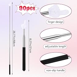 【Versatile Pointer Finger】Our pointer finger stick is an excellent tool for classroom presentations, reading sessions, and interactive activities. It is particularly beneficial for teachers, as it significantly enhances student engagement and comprehension during lessons 【Retractable Design】The finger pointer stick can be extended up to 26.77 inches/68cm, providing both flexibility and convenience. When folded, it measures a compact 8.27 inches, making it easy to carry and store. This feature makes it an indispensable tool for educators 【Durable Construction】Crafted from high-quality stainless steel and plastic, our classroom pointer stick is designed for durability and comfort. It is built to withstand daily use in various educational settings, ensuring longevity and a comfortable grip for teachers 【Colorful Variety】Included in the package are 30 teacher pointer sticks available in 5 vibrant colors: black, pink, purple, blue, green. These colorful options add a lively touch to lessons, capturing students' attention and encouraging active participation 【Teacher Essentials】This hand pointer stick is a crucial tool for educators, assisting in highlighting information on boards or books. It is designed to enhance teaching methods, making it a reliable and effective classroom pointer for teachers
