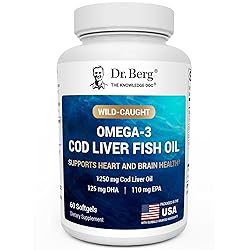 - Tired of fish oil supplements that leave a lingering taste or make you question what’s inside? Dr. Berg Omega 3 Cod Liver Fish Oil is made for those who want clear, reliable nutrition without compromise. Each softgel delivers 1250 mg of wild-caught Icelandic cod liver oil, providing 240 mg of omega-3s (110 mg EPA & 125 mg DHA) to help support your heart, brain, immune system, eyes, and skin health.* The natural lemon flavor means you get clean, fresh support with no fishy aftertaste. Every batch is lab-tested four times—including double third-party analysis for heavy metals—so you know exactly what you’re getting: pure, potent, and safe. Produced in US cGMP-certified facilities and sustainably sourced from pristine North Atlantic waters, this is premium omega-3 support you can count on. Choose Dr. Berg Omega-3 Cod Liver Fish Oil for clean, science-backed nutrition every day.