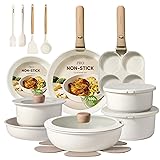 CAROTE Pots and Pans Set Non Stick, Cookware Sets, Kitchen Set, Oven/Dishwasher/Fridge Safe, Space Saving Pots Set, Nonstick Set with Versatile Detachable Handle, Induction RV Set, Cream