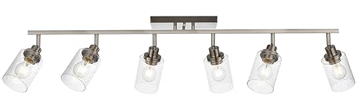 Sleek Style & Captivating Glow: Elevate your space with this modern track lighting. Featuring a shiny brushed nickel finish and textured bubble seeded glass shades, it casts a soft, diffused light that adds instant artistic flair to any room. No harsh glare – just warm, inviting ambiance Pinpoint Lighting Control: Direct light exactly where you need it! Each bubble glass tracking light head swivels 350° horizontally and tilts 90° vertically. Perfect for highlighting your gallery wall, brightening the kitchen counter, or setting a cozy mood Install Your Way with Two Options: Mount the track lighting kit flush to the ceiling or attach it to the wall. This versatile design adapts to your space, no electrician needed. Everything you need for a quick, tool-free installation is in the box. Get perfect lighting in minutes Works with Your Favorite Bulbs: Uses standard E26 sockets – simply pop in dimmable LEDs (our top pick for efficiency and ambiance), vintage Edisons, Halogens, or more (max 60W, bulbs sold separately). Fully dimmable when pairs with dimmable bulbs + compatible dimmer(not included) Light Up Your Any Room: Transform your space with this versatile track lighting kit! Adding a warm glow and creating a chic spotlight from kitchen to boutique, shine in style, ideal for kitchen islands, dining nooks, bathroom, walk-in closets, boutiques & galleries, cafes & lounges After-sale Service & Your Satisfaction: Shop with confidence! This chrome track light is backed by our 12-month hassle-free warranty. If anything flickers, loosens, or just isn't perfect, we've got your back. Contact our friendly customer service team anytime for a quick fix or replacement