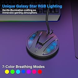 Studio-Quality Sound: This desktop microphone for pc features an omnidirectional pickup pattern, focusing on your voice to capture every detail for loud, powerful audio. Its intelligent noise reduction effectively filters out keyboard clicks, fan humming, and background noise, delivering crystal-clear, distortion-free sound. Experience exceptional audio quality with this must-have computer microphone for desktop. Plug & Play USB Microphone for PC with Wide Compatibility: No drivers or complex setup! Connect directly to Windows/Mac via USB and be ready in seconds. Works flawlessly as a streaming microphone or podcast microphone with native support for Zoom, Teams, Skype, YouTube, Twitch and more. ( not a speaker.) One-Tap LED Mute & Ambient Lighting: This essential desktop microphone features an eye-catching mute button with instant tap control – mute/unmute effortlessly during calling or streaming. Customizable breathing lights (on/off switch) enhance your gaming microphone setup with sleek tech aesthetics, elevating any workstation or gaming mic with premium ambiance. Flexible Gooseneck Wired Desktop Microphone: Designed for pc gaming, this microphone for computer features a fully adjustable 360-degree metal gooseneck for effortless positioning and optimal sound capture. The flexible 5.7-inch gooseneck offers superior convenience, allowing you to easily orient it horizontally or vertically to suit the speaker's comfort. Perfect for online meetings and capturing studio-quality audio during live recordings. Durable: Built with a high-grade metal gooseneck and a weighted, shock-resistant ABS base featuring non-slip silicone pads, this podcast mic remains steadfastly anchored, resisting displacement even during enthusiastic live streaming sessions. Compact and remarkably lightweight, its design enables easy portability, effortlessly stow this versatile usb microphone in your bag for immediate use in offices, meeting rooms, or home studio setups.
