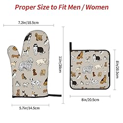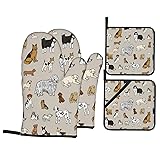 Perinsto Cute Dogs Animals Beige Oven Mitts & Pot Holders 4 Pcs Set, Decorative Heat Resistant Cooking Gloves Microwave Oven Gloves for Kitchen Baking Grilling BBQ