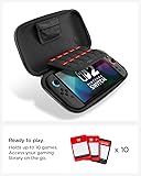 Built Tough for Switch 2: Crafted with a premium EVA shell, nylon, and zippers for protection and quality you can trust Travel-Ready: Sleek and compact design with a premium carrying strap for effortless travel and on-the-go gaming Theft and Screen Protection in One: Built-in tracking device holder with newly redesigned soft zippers that prevent scratches and keep the device safe and secure Designed for Switch 2: Perfectly compatible with Nintendo Switch 2, 10 game cartridges, and tracking device Perfect for Switch 2 Gaming Essentials: Designed to fit Switch 2 and accessories, including games like The Legend of Zelda: Tears of the Kingdom, for easy travel and protection on the go.