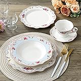 WHAT'S IN THE BOX: This Floral with Blue and Gold Trimed dinnerware set includes 20 pieces: service for 4 people. Perfectly sized dishes for any occasion. Four 10.5" Dinner Plates, Four 8" Salad Plates, Four 8.5" Soup Plates, Four Teacups, and Four Saucers CLASSIC, CONTEMPORARY, & CHIC DESIGN: The beautifully detailed design complements any decor and can be used for formal and casual occasions. Each piece is chic and elegant, accented by inner and outer borders of dishwasher safe gold. HIGH QUALITY MATERIALS: Made of high-quality Bone China. Our dinnerware set is built to last. Each piece undergoes rigorous quality control measures to make durability, resilience, and long-lasting beauty that are also DISHWASHER SAFE, making for a quick cleanup. Easy to use every day. THE PERFECT SET: Make any dining experience feel effortlessly fashionable. We are all about settings: setting the tone, setting the mood, and setting the table to perfection. Simply pair with your favorite cutlery and silverware and you are ready to eat! The plates and bowls will leave your guests in awe. FAMILY OWNED: Joseph Sedgh Collection is an industry-leading producer of tabletop and housewares products based in New York. Family-owned since 1987, we’ve developed a brand that thrives off relentless commitment to quality, style, innovation, and value for our consumers around the world