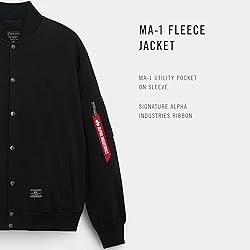 Alpha Industries MA-1 Fleece Jacket Soft Cotton Blend Utility Pocket Ribbed Cuffs and Hem Classic Military Inspired Design