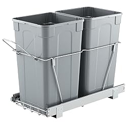Hidden Trash Bin: The pull out trash can maximizes space usage and keeps your kitchen cleaner and more organized. It effectively prevents children or pets from accidentally knocking it over, maintaining cleanliness in your home, dining area, bar, or other spaces Dual 27QT Capacity: Our pull out garbage can comes with a 27 + 27QT large capacity, perfectly meeting the needs of both home and commercial use. It helps eliminate the hassle of frequent trash disposal. The dual-bin design also aids in waste sorting. With bottom installation, it can hold up to 25 kg / 55.12 lbs of trash and slides in and out effortlessly Premium Material: The under counter trash can features high-quality smooth steel ball rails, allowing you to smoothly and quietly slide the bin in and out. There's no need to constantly adjust the bin, making trash disposal easy and comfortable. The bracket is made of iron, offering strong rust and corrosion resistance and can be wiped clean for long-lasting durability Easy Installation in Minutes: With the included mounting holes and screws, installing the trash can into your cabinet is quick and easy. Recommanded cabinet size: Depth(front and back): ≥565 mm / ≥22.2 inch; Width(right and left): ≥292 mm / ≥11.5 inch; Vertical Height(up and down): ≥500 mm / ≥20 inch. After measuring the cabinet, you can assemble the trash can in just a few minutes Handle Design: The under cabinet trash can with a handle is more considerate. Simply pull the trash can out of the bottom cabinet. With the smooth sliding track, you can slide in and out of the container without noise or obstruction, avoiding direct contact with garbage and ensuring cleanliness and hygiene