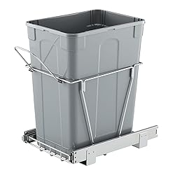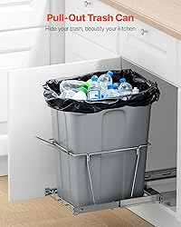 Hidden Trash Bin: The pull out trash can maximizes space usage and keeps your kitchen cleaner and more organized. It effectively prevents children or pets from accidentally knocking it over, maintaining cleanliness in your home, dining area, bar, or other spaces Large 35QT Capacity: Our pull out garbage can comes with a 35QT large capacity, perfectly meeting the needs of both home and commercial use. It helps eliminate the hassle of frequent trash disposal. With bottom installation, it can hold up to 30 kg / 66.14 lbs of trash and slides in and out effortlessly Premium Material: The under counter trash can features high-quality smooth steel ball rails, allowing you to smoothly and quietly slide the bin in and out. There's no need to constantly adjust the bin, making trash disposal easy and comfortable. The bracket is made of iron, offering strong rust and corrosion resistance and can be wiped clean for long-lasting durability Easy Installation in Minutes: With the included mounting holes and screws, installing the trash can into your cabinet is quick and easy. Recommanded cabinet size:Depth(front and back): ≥430 mm / ≥17 inch; Width(right and left): ≥292 mm / ≥11.5 inch; Vertical Height(up and down): ≥500 mm / ≥20 inch. After measuring the cabinet, you can assemble the trash can in just a few minutes Handle Design: The under cabinet trash can with a handle is more considerate. Simply pull the trash can out of the bottom cabinet. With the smooth sliding track, you can slide in and out of the container without noise or obstruction, avoiding direct contact with garbage and ensuring cleanliness and hygiene