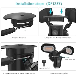 - Protect your Ring Floodlight Cam Wired Pro from the elements with this specially designed weather-resistant shield cover. Made from durable ABS material, this black protective cover offers comprehensive defense against harsh weather conditions including rain, snow, and intense sunlight. The thoughtfully engineered design features a sunscreen protective layer to prevent UV damage while maintaining clear camera visibility. Installation is straightforward with the included mounting hardware - simply loosen the screws, position the shield over your camera, and tighten to secure. The cover includes precise cutouts for the power button and other essential functions, ensuring full access to all camera features. This accessory is specifically crafted to seamlessly integrate with your Ring Floodlight Cam Wired Pro, providing year-round protection without compromising performance. The robust construction and weather-resistant properties make it an essential addition for maintaining your security camera's longevity in outdoor settings.