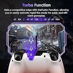 【Enhanced Compatibility & Design】This ps-5 wired controller is fully compatible with PlayStation 5/Pro/Slim, PC/Steam and Windows. Featuring a sleek white and black design, it combines style with ergonomic comfort for extended gaming sessions 【6-Axis Gyro & Motion Sensing】The pc wired controller comes with built-in 6-axis gyro sensor to relax your fingers. The controller for PS-5/Play Station 5 has dual vibration motors with 4-level precise vibration feedback: none, weak, medium and strong which provide you excellent vibration feedback to enhance the game immersion. One-click to adjust the vibration mode to fit your preference 【Turbo Function & Ergonomic Design】Turbo button features 3 burst speeds: 5 shots/s, 12 shots/s, 20 shots/s, make it easier for you to win various games, while the ergonomic grip ensures long-lasting comfort during extended playtime 【3.5mm Audio Jack & Haptic Feedback】Stay fully immersed with built-in haptic feedback for realistic vibration effects, and enjoy seamless in-game communication through the integrated 3.5mm headphone jack 【Low-Latency Wired Connection】Enjoy ultra-fast response times with a stable wired USB connection, eliminating lag for a competitive edge in fast-paced games 【RGB LED Modes】The controller offers "Breathing" and "Single color" modes with 8 colors to customize your gaming setup. creating an immersive visual atmosphere that matches your style and mood