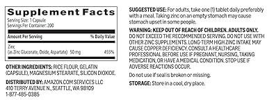 Amazon Basics Zinc Capsules, 50mg 200 Count