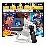 Mini Projector with WiFi 6 and Bluetooth 5.4 Built-in Apps for Bedroom Portable Projector Android 14 Smart Auto Keystone 1080P 4K Support Compatible with iOS/HDMI/TV Stick VisualCube 300