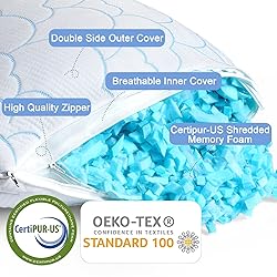 Cooling Pillows Queen Size Set of 2, Shredded Memory Foam Pillows for Sleeping 2 Pack, Soft Breathable Bamboo Cool Cold Bed Pillow Adjustable Firm Gel Pillow for Hot Side Back Stomach Sleepers