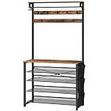 HOOBRO Hall Tree with Bench, Entryway Coat Rack with Shoe Rack, 39.4" Shoe and Coat Rack, 5 Tier Shoe Storage Organizer with Oxford Fabric Side Pockets, Adjustable Mesh Shelves, Rustic Brown BF76MT01