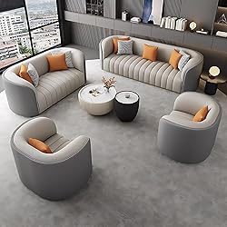 LyckTre Curved Sectional Sofa Set - Luxurious Sectional Couches with Chair, Premium Leather, Solid Wood Frame Couch Sets with Coffee Table (Light Gray*2-Chair*2,79IN)