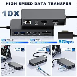 【12-IN-1 MS Surface Pro Docking Station】 MS Surface dock Equipped with Surface Connection technology to offers 12 options for Enhanced Productivity. Upgraded Surface Docking Station design with HDMI*4K@60Hz, DP*4K@60Hz, Full-function Type-C female socket support: 4K@60HZ video expansion + 5Gbps Data + 5V3A fast charging 3 -in-1; The Surface pro docking station also equip 100Mbps RJ45 Ethernet port, 2x USB C 3.0 data port, 2x USB A 3.0 Data Ports, SD+TF cards slot, 3.5mm audio Port, 120W DC Power Port and 120W surface Power Adapter charger, Surface dock With simple plug and play connectivity. 【4K/60HZ Triple Display Output Surface Dock Hub】MS Surface Triple Displays Dock(HDMI+DP+Thunderbolt USB-C) with extend or mirror mode, Boost your efficiency 3 times.Enjoy MST (Multiple Stream Transport) functionality for efficient multitasking with up to three screens simultaneously. Whether you need to duplicate or expand your screen. Whether display one screen or 3 screen,the MS Surface docking station will always ensures an 6K@60HZ exceptional viewing experience. 【3-in-1 Full Function USB-C & 120W Surafce Power Supply Adapter】Surface thunderbolt 4 dock design a full-function Type-C interface, support USB C 3.0, with a maximum rate of 5Gbps;USB C video expansion up to 6K@60HZ, and support 5V3A USB C fast charging. The MS surface pro docking station features a DC 15V4A-8A power input,supporting up to 120W fast charging, ensuring your Surface stays powered all day(This Surface Dock hub include a surface 120W DC power adapter charger). 【Super Speed Data Transfer Surface Docking Station】This Surface Pro docking station comes with 2 * USB A 3.0(5Gbps) and 3 * USB C data (5Gbps) ports for seamless data transfer,allows you to connect keyboard,mouse,USB flash driver,USB C hard disks,etc;Extra SD TF 3.0 slot up to 104mb/S , UHS-I, maximum support 2TB, support two cards to read at the same time. no need to carry sd reader. 【Broad Surface Laptop Compatibility】 This MS Surface Docking station with surface connection technology, is widely compatible with Microsoft Surface pro 12/11/10/9/8/X/7+/7/6/5/4/3, Surface Laptop 7/6/5/4/3/2/1, Surface book 4/3/2/1, Surface go 4/3/2/1,Surface laptop go 3/2/1, Surface laptop studio 1/2, Surface laptop, Windows 11 AI+PC, Surface pro, Windows 11 AI+PC (Please connect to your surface power supply port when using) 【What You Will Get】1x Latest MS Surface Dock, 1x 120W surface Power Supply Adapter, 1x instruction manual. This Quality 12-in-1 surface dock Media Hub give you multi functions thought single surface connector,Easily carry and go for your business trip. You will also get 24-month hassle-free manufacturer's warranty/free lifetime technical & money back in 3 months. We responsive customer service for the long-time enjoyment