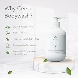 - Ceela Naturals Body Wash is a revolutionary CLA-based cleanser designed to support sensitive, allergy-prone skin without compromising the skin’s microbiome. Formulated with Potassium Linoleate (CLA from Safflower), Aspartate, and Phenylalanine, this soap-free and preservative-free cleanser gently purifies the skin while helping to soothe irritation caused by eczema, dermatitis, and other common skin concerns.Backed by 9 U.S. patents, this innovative formula helps reduce overgrowth of yeast and bacteria—especially Malassezia and Candida—without disrupting your skin’s natural barrier. Free from synthetic fragrances, emulsifiers, and allergens, it is manufactured in the USA using unshared equipment to prevent cross-contamination. Safe for all ages, Ceela Naturals Body Wash offers a new standard in gentle, microbiome-friendly skincare.