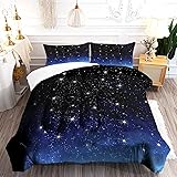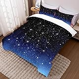 DAZYFA Galaxy Comforter Set Full/Queen Size Gradient Glitter Bedding for Girls Boys Kids Men Blue Starry Sky Universe Outer Space Bedroom Decor, 1 Comforter 2 Pillowcases