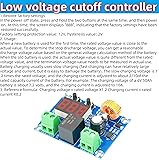 Low voltage cutoff controller:Compatible with for DC12-36V lead acid battery and lithium ion battery Over-discharge protection module Size: 57*42*19mm Voltage:DC 12-36V;Accuracy:0.1V Control precision: 0.1V;Power Consumption:<1.5W Maximum Amperage before Breaker Trips:20A Delay Turn-ON Time range:0-999/s