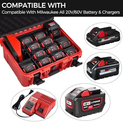 Case for Milwaukee Battery – Waterproof Extra Large Hard Storage Box with 8 Adjustable One-Piece Molded Dividers, Heavy Duty Protective Organizer for Milwaukee Battery & Charger