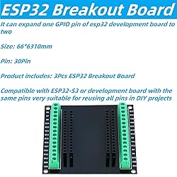 - MTDELE 3Pcs Compatible with for ESP32 ESP32S 30Pin GPIO 1 into 2 Pin Expansion Breakout Board for ArduinoBreakout Board: It can expand one GPIO pin of reakout Board development board to twoSize: 66*63*10mmPin: 30PinProduct includes: 3Pcs Breakout BoardCompatible with ESP32-S3 or development board with the same pins, very suitable for reusing all pins in DIY projects