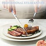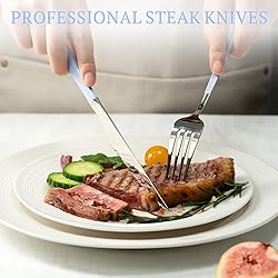 【Built to Last: The Brilliance of High-Quality Stainless Steel】:Stop settling for flimsy flatware that rusts and bends! Our silverware set is meticulously crafted from premium, food-grade stainless steel—not just durable, but designed for a lifetime of use. Feel the comfortable, substantial weight in your hand and know you're investing in quality that will grace your table for years to come. 【Elevate Every Meal: Elegant & Modern Design】:Forget the boring, plain silverware. Our cutlery set features a sleek, modern design with perfectly balanced weight and smooth, flowing lines. It's so much more than just utensils—it's an accessory for your table. Whether you're hosting an intimate holiday dinner, a sophisticated cocktail party, or an everyday family meal, this elegant design instantly elevates the ambiance, making every occasion feel like a special event. 【The Perfect Cut: Specialized Steak Knives Included】:You shouldn't have to scramble for a proper knife when serving a beautiful steak, pork chop, or even thick-crust pizza. Unlike standard sets, ours includes four perfectly serrated, razor-sharp steak knives. Each knife is designed for an effortless, clean cut, ensuring you and your guests enjoy every single bite. 【Unbeatable Value: The Ultimate 24-Piece Family Set】:Get everything you need in one smart purchase! This is a value-packed 24-piece silverware set that comfortably serves four people with four dinner forks, salad forks, soup spoons, teaspoons, and the essential steak knives. It's perfectly sized for a family of four, yet versatile enough to cover a large gathering or dinner party when combined with your existing pieces. 【Buy with Confidence: Our Commitment & Warranty Gift】:Your satisfaction is our top priority. We're so confident in the quality and craftsmanship of our flatware that every set comes with a 99-year warranty gift to ensure your peace of mind. This isn't just a sale; it's a risk-free investment in your dining future. Purchase today and experience the difference true quality makes!