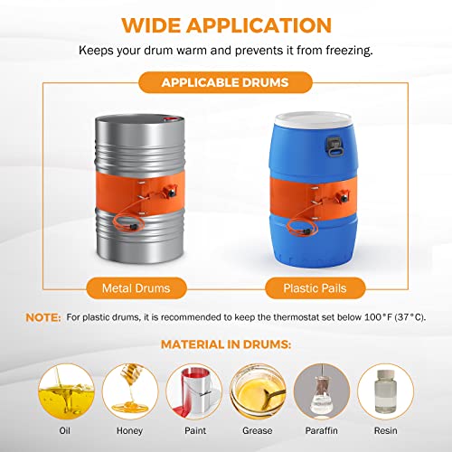 - WIDE APPLICATION - Keeps your drum warm and prevents it from freezing. Suitable for metal buckets, plastic pails, honey buckets, paint pails of plastic, and metal. Ideal for heating up waste vegetable oil for settling or processing biodiesel.