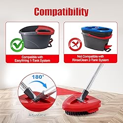 - 【Compatibility】Mop handle, upgraded scrubbing brush and mop base are compatible with Ocedar EasyWring 1 Tank system. Package includes: 4-section mop handle, 2 upgraded mop scrubber heads, 1 mop base (bucket not included) 【Upgraded Scrubber Mop Heads】The upgraded Mop Brush for Ocedar features full bristle coverage, which helps remove stubborn stains and dirt more easily and efficiently, and won’t wear down the floor. Additionally, the bristles are easy to clean after use. 【4-Section Stainless Steel Mop Handle】Spin mop handle replacement for Ocedar is made of durable stainless steel and fits most other rotary mops and brooms with American threaded joints. Compared with ordinary iron handles, it is stronger, less likely to deform or break. The replaceable handle is length-adjustable to suit different heights—from mopping floors to reaching high areas like walls and ceilings. 【Easy to Install and Remove】Spin mop handle for Ocedar no tools or complicated steps required,simply screw the threaded end of each rod into the next and tighten. For the upgraded scrub brush, just align it with the base and press gently to lock it in place. Once assembled, you’re ready for a hassle-free cleaning experience. 【Multi-Occasion Use】Spin mop handle replacement and scrub brush combo set for Ocedar spin mop is suitable for various sealed floors, including hardwood, laminate, vinyl, and tile. It’s perfect for daily cleaning kitchens、offices and more. Featuring a rounded triangular design, the mop head prevents scratches on furniture while cleaning, making it ideal for multi-scene use.