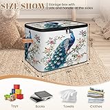 Mintoprints Peacock Storage Bins with Zipper Lid Fabric Home Cubes Storage Baskets Boxes Clothes Organizer Container Flower