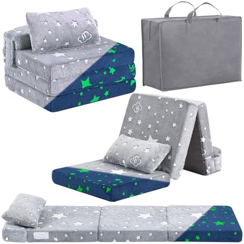 - [Perfect Gift for Boys and Girls]The kids' folding mattress with pillow is a perfect gift for birthdays, Christmas, or any occasion! Your child will love using this 3-fold mattress sofa as a cozy spot for relaxing, reading, playing, or watching their favorite TV shows. Its modern design and vibrant colors make it an excellent addition to any room, bringing a lively touch to your home.