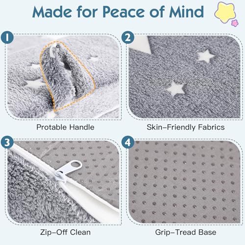 Foldable Floor Mattress with Pillow for Kids, Glow in The Dark Grey Star Toddler Washable Folding Floor Nap Mat for Daycare, Child Trifold Futon Sofa Bed with Storage Bag for Playroom Girls and Boys