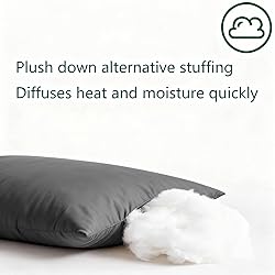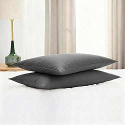 Gooeb Flat Ultra Thin Bed Pillows Standard/Queen Size Pillow Set of 2 Extra Soft Down Alternative for Stomach Back Sleeping Dark Grey