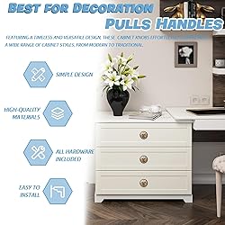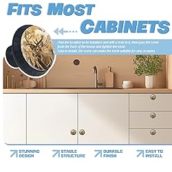 CABINET KNOB SIZE:Each drawer knobs measures 1.37L x 1.37W x 1.1H inch | 3.5 x 3.5 x 2.8 cm ; MATERIAL:This round cabinet knob is made of quality glass crystal and plastic base,can use for a long term; WIDE APPLICATION:This cabinet knobs have an exquisite appearance,perfect ideal for cabinets, dressers, drawers, Brass,Cupboard Furniture Hardware Pulls and more; EASY TO INSTALL:Comes with two screws of different sizes( 1.1in and 1.37in long) to make it convenient for you to choose and facilitate easier, simpler installation; SATISFACTION GUARANTEE:We will do our best to satisfied our custom, if you have any quantity or quality issues, we provide replacement. Contact with us anytime, we will do our best ;