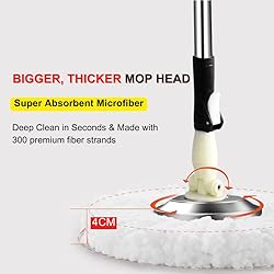 【Durable Stainless Steel Build】 The wringer, handle, and bucket are made with strong stainless steel. It’s rust-resistant, sturdy, and built to last. The adjustable handle extends to your preferred height so you don’t have to bend or strain your back. 【Easy to Move, Smart Design】 Comes with a built-in carry handle, so you can move the bucket around without spills. Also includes a drainage plug for quick water release and a soap dispenser for easy mixing—no extra bottles needed. 【Powerful Hand-Press Wringing】 No pedal needed. Just press the mop down and spin. The stainless steel basket wrings out excess water quickly, while the splash guard keeps dirty water inside. You can spin lightly or firmly based on how wet you want the mop. 【Cleans All Floor Types】 Use wet or dry. The 360° spinning microfiber head reaches into corners and under furniture. Great for hardwood, tile, laminate, vinyl, and even glass. Picks up dust, hair, and dirt with ease. 【Reusable Microfiber Mop Heads】 Comes with 3 thick microfiber mop refills that are soft, absorbent, and machine washable. They’re built for long-term use and leave floors clean and streak-free.