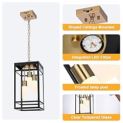 Elegant Industrial Design: Crafted with a black and brushed brass metal frame and clear sleek tempered glass panels, Wanluce LED outdoor pendant light fixtures offers timeless appeal.The clear glass panel shows its frosted white lamp columns, enhances light diffusion, creating captivating ambiance for porches and entryways. Integrated LED Bulbs, 5-Selectable Color Temperatures: Our outdoor chandelier with built-in integrated LED, offers energy-efficient illumination, reduces the hassle of frequent bulb replacement. You can adapt the ambiance instantly from 3000K (cozy) to 6000K (vibrant) via slide 5CCT switch(3500K/4000K/4500K/5000K/6000K). Perfectly set the mood for dinners, security, or festive gatherings with this versatile exterior pendant light. Waterproof & Versatile: Specially design for outdoor durability, the LED outside pendant light fixture with IP44-rated waterproof coating construction withstands rain, snow, rust resistant, ensures years of outdoor reliability, no restriction of where you set it up, ideal for porches, garages, gazebos, foyers, and covered patio. Customizable Hanging Height: Includes adjustable 39" chain/cord for flexible installation. Easily tailor the pendant fixture’s height to suit vaulted ceilings, covered patios, or low-entry gazebos for ideal task and accent lighting. Universal Easy Installation: Includes all hardware and clear instructions. Mounts effortlessly on flat, sloped, or vaulted ceilings in under 30 minutes—no electrician needed. Pre-assembled components save hassle.