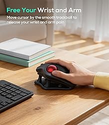 Thumb-Controlled Trackball: Navigate with ease using your thumb on this wireless mouse, reducing hand and arm movement. Helping to minimize strain and fatigue,the office mouse is perfect for long hours at the desk Ergonomic Tilt Stand: The ergonomic wireless mouse comes with a 21.7° tilt stand for a more natural wrist position. The tilted, elevated mouse for pc fits your palm precisely, delivering a more comfortable and effortless grip True Silent Control: Experience a completely noise-free operation with this cordless mouse. From the trackball to every button and scroll wheel. Perfect for shared spaces, late-night work, or anyone who values total focus without distractions Multi-Device Connection: This wireless mouse connects via Bluetooth or the included USB receiver. Pair with up to 3 devices and switch instantly at the tap of a button—no need to re-pair for a seamless workflow. Compatible with PC, Mac, laptops, tablets, and phones 4 Adjustable DPI Levels: Choose from 4 sensitivity levels (400/800/1200/1600 DPI) for precise control or faster movement. This trackball mouse is ideal for drawing, editing, multitasking with different screens, and daily office work