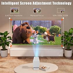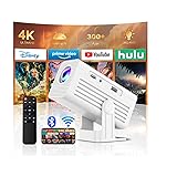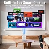【Built in App Mini Projector】This smart projector supports YouTube, Hulu, Prime Video and other streaming media, and seamlessly access over 1,000,000 videos with clicks. Powered by Android 11.0, it provides one-tap access to the app store for effortless downloads of additional applications. 【Short Throw Projection】It has an extremely short projection distance, which only takes 1.8ft for a 22" display, or 16ft for 120" immersive vision. Our small projector are designed for compact spaces - transform your small living room into a cinema, turn your the bedroom becomes a game battlefield, and upgrades the conference room to a creative stage. 【4K Cinema Follows You】The projector is equipped with 4K HD support, 260 ANSI to bring every detail to life, providing a sharp and vivid visual enjoyment. Auto keystone correction, 4 point keystone adjustment, and precise adjustment of ±50° angles ensures the projector is perfectly aligned, providing a stable mirror for movies, demonstrations or games. 【Effortless Projection Anywhere】No need to reserve extra space for this video projector, no lifting, no tangled wires. Just rotate, and project in seconds, perfect for quick setup. It can be placed on a wall, ceiling or table; it can be easily adjusted for optimal viewing no matter where it is placed. 【Movie in Your Pocket】This mini portable projector size is 5,1 x 2,7 x 2,9" and weighs only 0.62 lbs, is small and lightweight and can be carried around. Folds down to the size of a bottle, Slide it into your backpack for business trips, home theater movie nights, and turn any wall into your cinema. 【Multi Scene Use】Our smart projector with wifi 6.0 and bluetooth 5.2 bidirectional connection, ensuring fast streaming and stable connections to devices such as mobile phones, laptops and gaming consoles. It can easily bring mobile content to large screens and is perfect for home theater, gaming, camping and more.