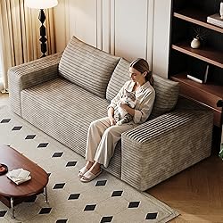 No Assembly Required: Escape the typical furniture setup hassle with our small loveseat sofa . Simply unbox all parts and lightly tap each segment to boost its springiness and poof, bringing it back to its photogenic glory. Complete revival may take up to around 72 hours. Delight in the ease of a no-assembly nirvana! Everyday Sofa with High-Density Comfort - 35D Foam for Lasting Support:Upgrade your living space with EAFURN's minimalist couch featuring 35D high-density foam. Designed for daily relaxation, its fast-rebound core prevents sagging while offering firm support and cozy comfort. The ultimate blend of resilience, ergonomic design, and modern style for busy households. Fluffy Corduroy Upholstery : Transform your space with premium corduroy fabric offering cloud-like softness and elegant ridges. The breathable, pill-proof material ensures year-round comfort—cool in summer, warm in winter—while adding timeless texture to modern sofas. A touch of refined luxury for discerning homes Excellent Fabric & Foam: Designed with 35D high-density foam, this boneless loveseat couch is comfy and uniform, well-rebound with great support, and is not easily deformed. Its ergonomic design ensures comfort whether you're lounging or sleeping. The corduroy fabric is breathable, resilient, stylish and comfy . Extra-Wide 10.6" Armrests :Our 10.6-inch wide armrests (30% broader than standard sofas) provide full forearm support and stable surfaces for drinks, tablets, or remote controls.