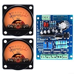 - Features:* VU-01 driver board, a newly redesigned, high-quality audio driver. Includes two VU meters and driver board.* 39-inch 500V level meter. Weight: 0.085 kg per set (two meters plus driver board).* Driver board mounting dimensions: 67.4 mm x 56 mm frame, 57 mm x 50.5 mm screw holes. Suitable for M3 screws.* Two blue 3296 series 500 ohm potentiometers on the board adjust the sensitivity of each meter. Turning clockwise increases sensitivity.Specifications:Part Name: VU Level Meter + Driver BoardMaterial: ABS, PCBColor: As shownVU Meter Specifications: (See below)500μA VU meter with filament backlightInterface DC resistance: 630 ohmsBacklight filament voltage: DC/AC 6V to 12VVU Meter Driver Specifications: (see below)Power Supply Voltage: AC 12V 500mASize: 67mm x 56mm x 25mmConnects two VU meters (100μA to 500μA). You do not need to adjust our 500μA VU meters. (Other models may require adjustment.)Tuning Instructions: (see below)1) Adjust the resistance values of R9 and R10 according to the backlight's electrical specifications to achieve the desired brightness.2) Adjust VR1 and VR2 to adjust the pointer swing amplitude for the left and right channels separately. Please adjust according to the power.3) Please select AC 12V/500mA power input.4) During operation, R9 and R10 will generate a certain amount of temperature.Package Contents:2 x VU Level Meters1 x Driver Board